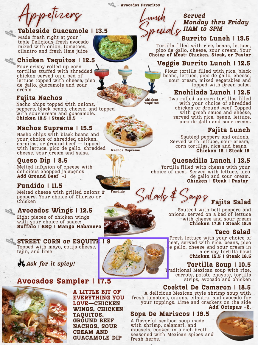 Made fresh right at your table. Delicious fresh avocado mixed with onion, tomatoes, cilantro and fresh lime