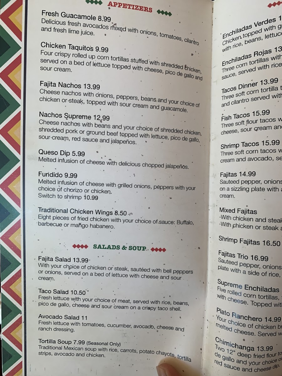 Three corn tortillas filled with cheese and spinach. Served with cheese, rice, beans, pico de gallo and sour cream.