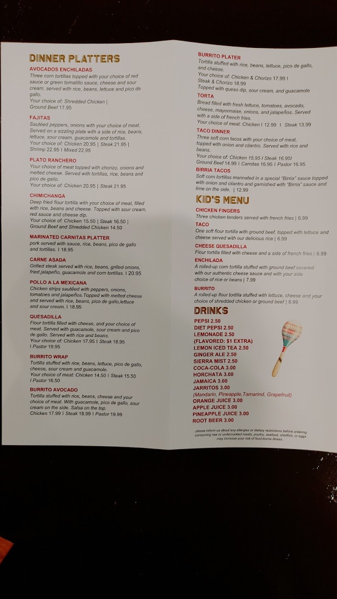 Tilapia fish cooked with lime juice, cilantro, onion, tomatoes, carrots and cucumber. Garnished with avocado.